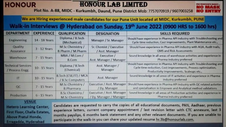 - Qualification: B.Sc / B.Pharm / M.Pharm / M.Sc / B.A / B.Com / M.Com / MBA / B.Tech / Diploma