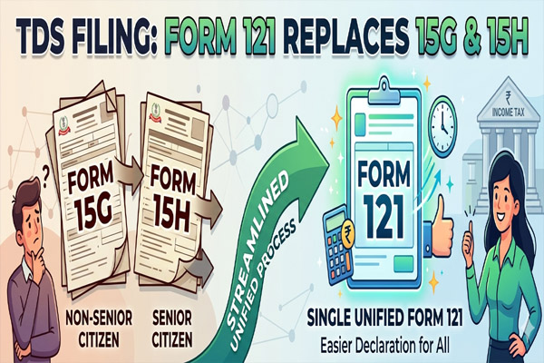 From April 1, 2026, Forms 15G and 15H are replaced by a single, streamlined Form 121 for TDS exemption on interest income, reducing paperwork. This new form applies to resident individuals (under or over 60) and HUFs whose total annual income is below the taxable limit, ensuring no tax is deducted at source