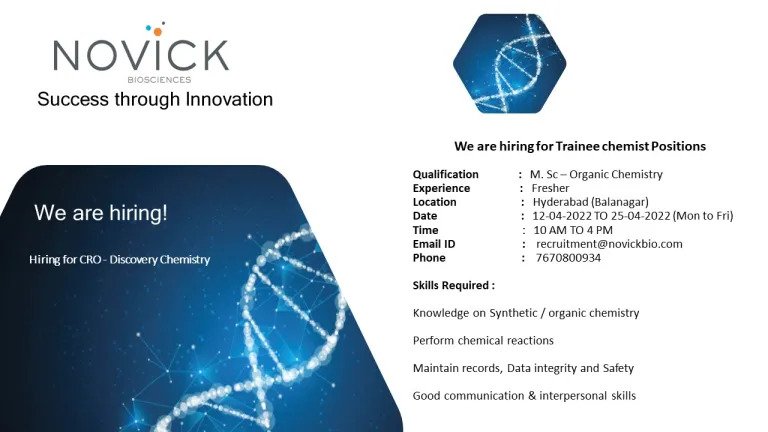 Those who are unable to attend the interview can share their profiles to recruitment@novickbio.com