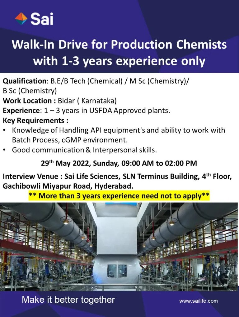 Venue: Sai life Sciences, 4th Floor, SLN Terminus, Gachibowli, Hyderabad