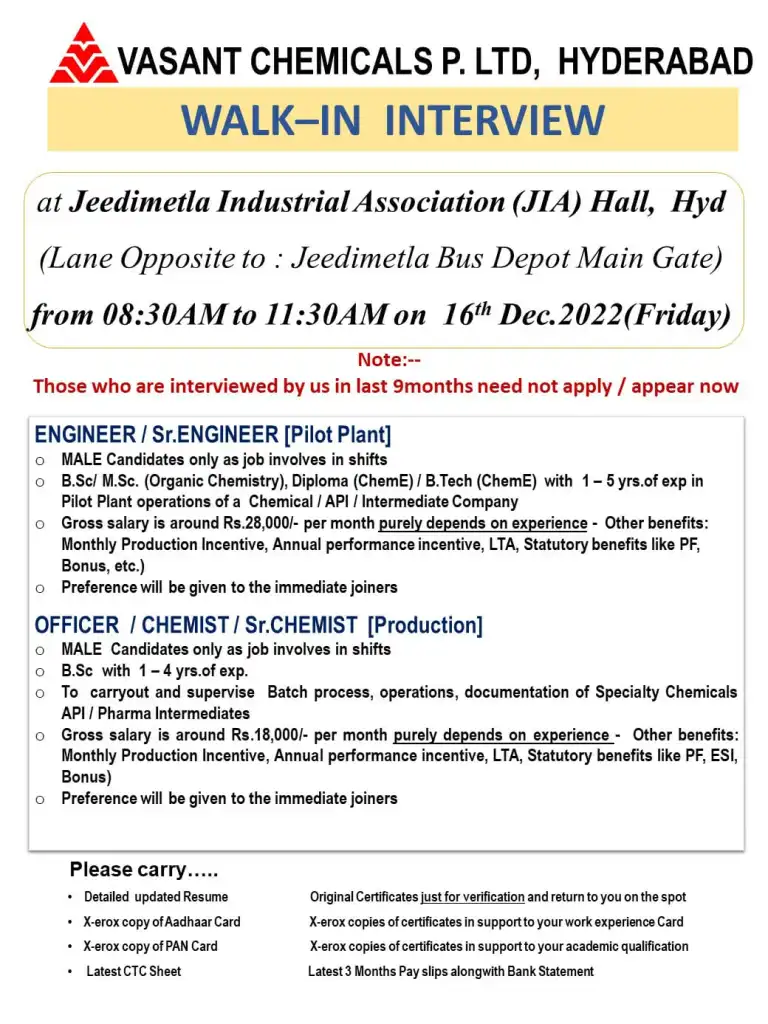 - Designation: Chemist / Sr. Chemist / Officer / Engineer / Sr. Engineer